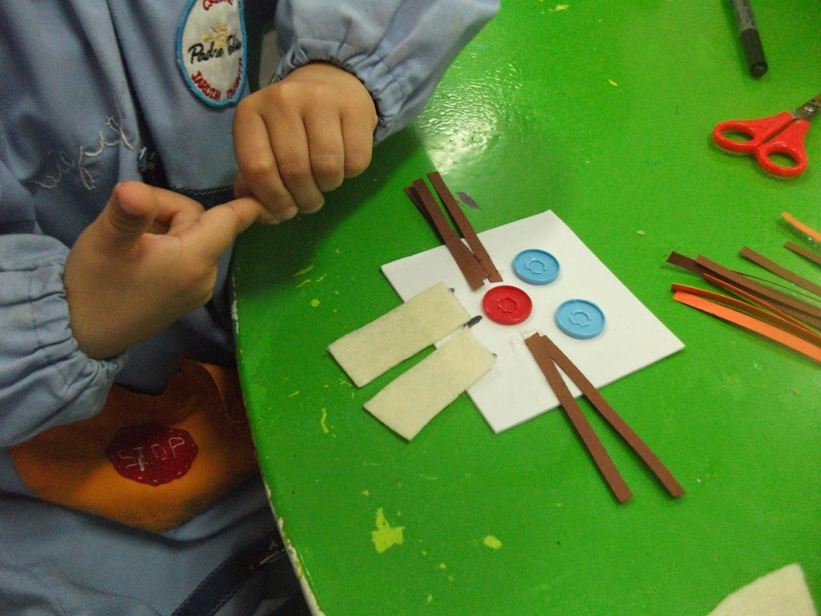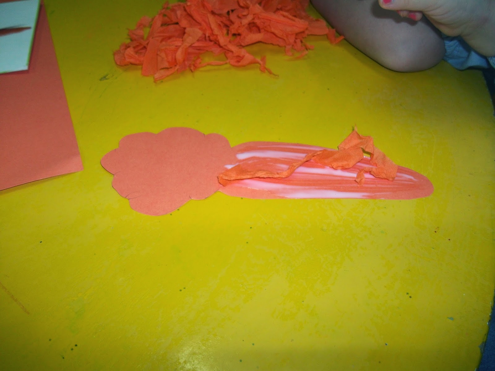 Os meninos ficaram preocupados, o que irá comer o coelho da páscoa? Cenouras pois claro! Outro grupo a criar as suas cenouras para que nada falte ao nosso coelho de páscoa, que depois de distribuir tantos ovos de chocolate terá uma fominha...