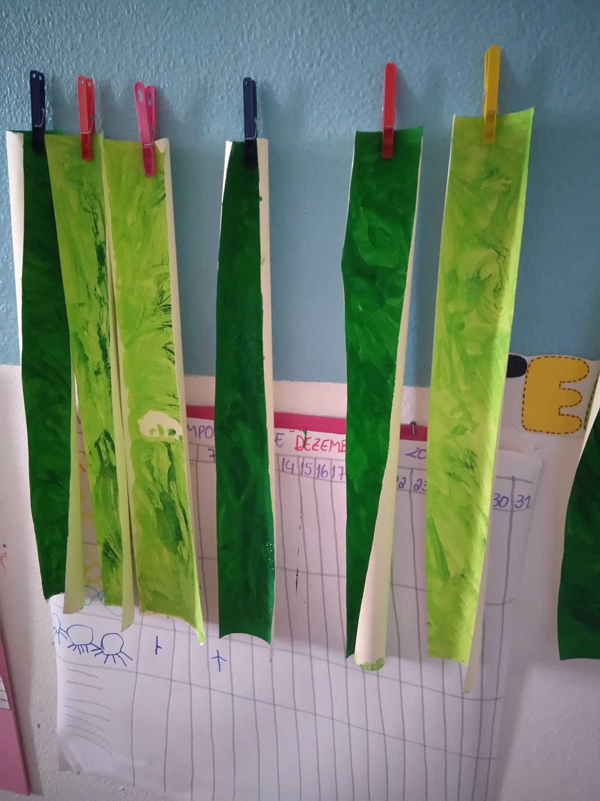 Encontraram a solução no nosso dosseir de moldes e ideias.... num papel pediram -me para lhes desenhar «uma árvores destas mas com as tiras que pintamos...» Lara